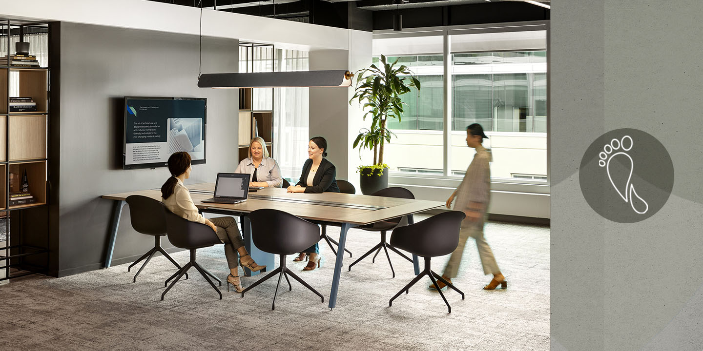 ● Mindful material selection during the design phase helped to maximize the use of carbon-neutral finishes such as carpet or solid surfaces.