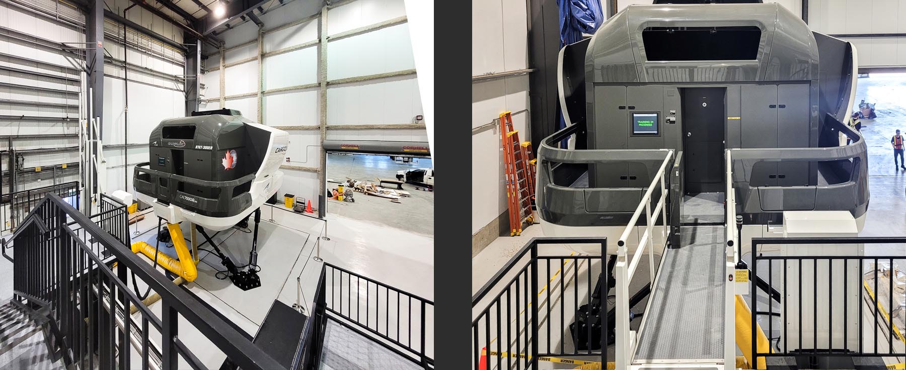 At John C. Munro Hamilton International Airport, CargoJet installed a CAE simulator in a portion of an existing hangar. The project scope included the design and installation of two new simulator bays, approximately 6,000 square feet, along with a mezzanine level connected to the existing second-floor administration space of the hangar.