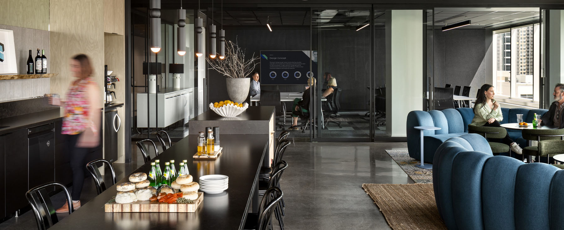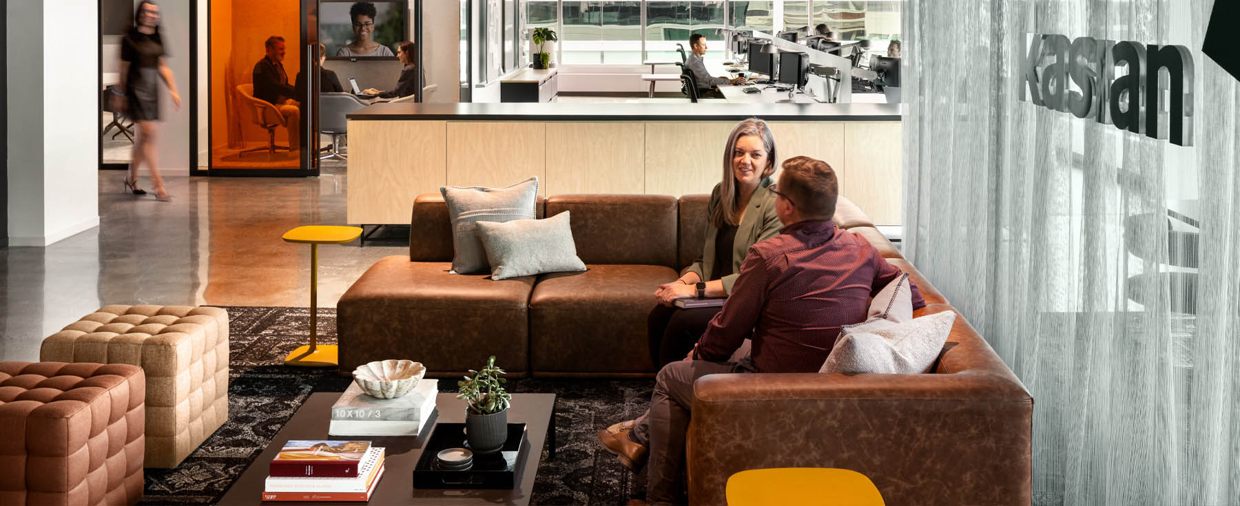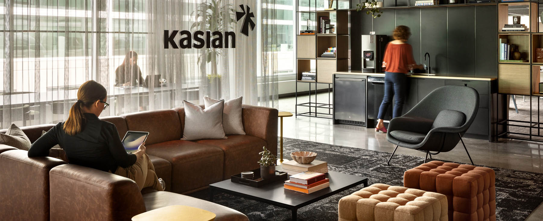 Kasian designed their new Calgary studio to integrate hybrid work models and sustainability, aiming for WELL certification, fostering movement, choice, culture, and community in a warm, welcoming environment.