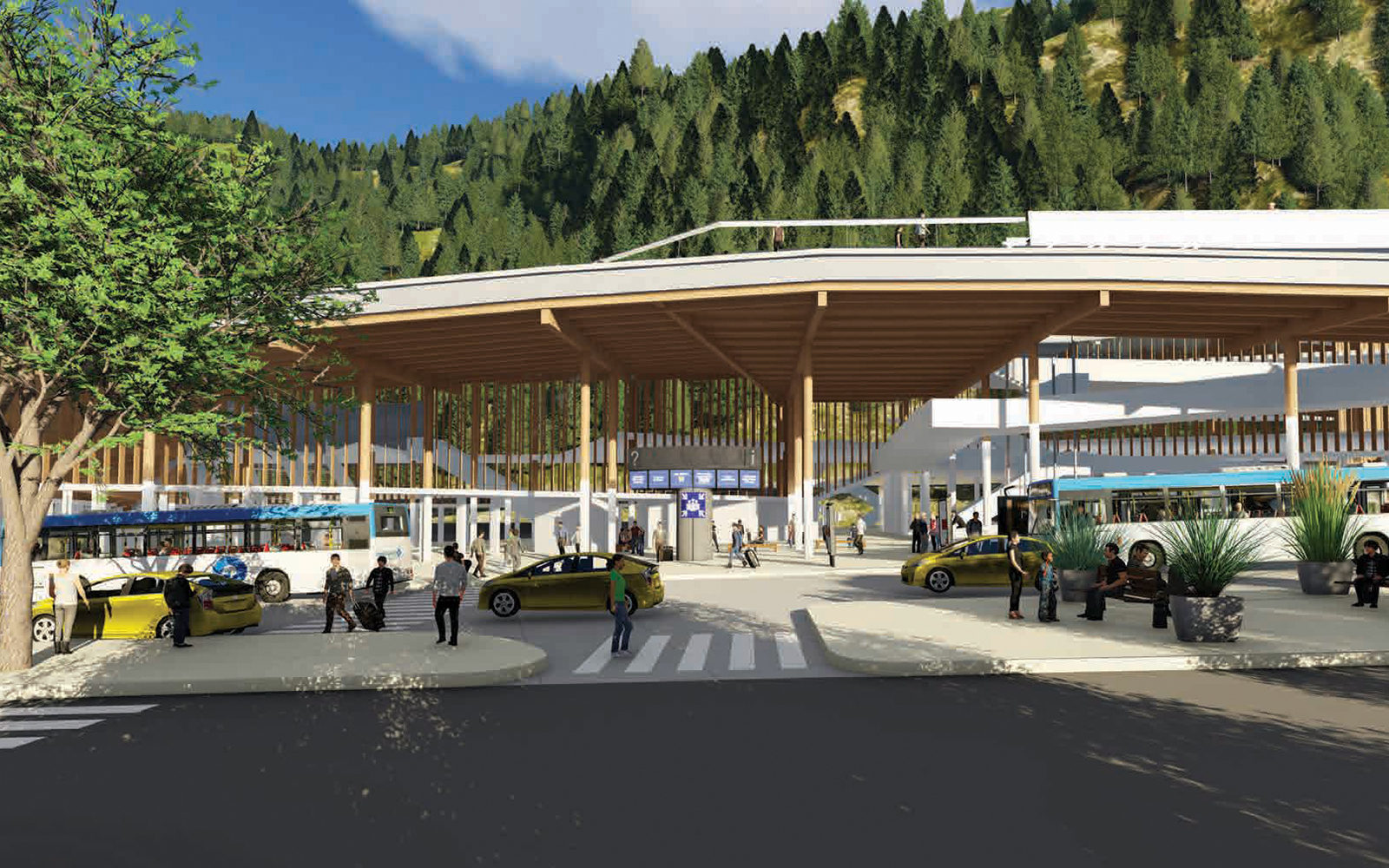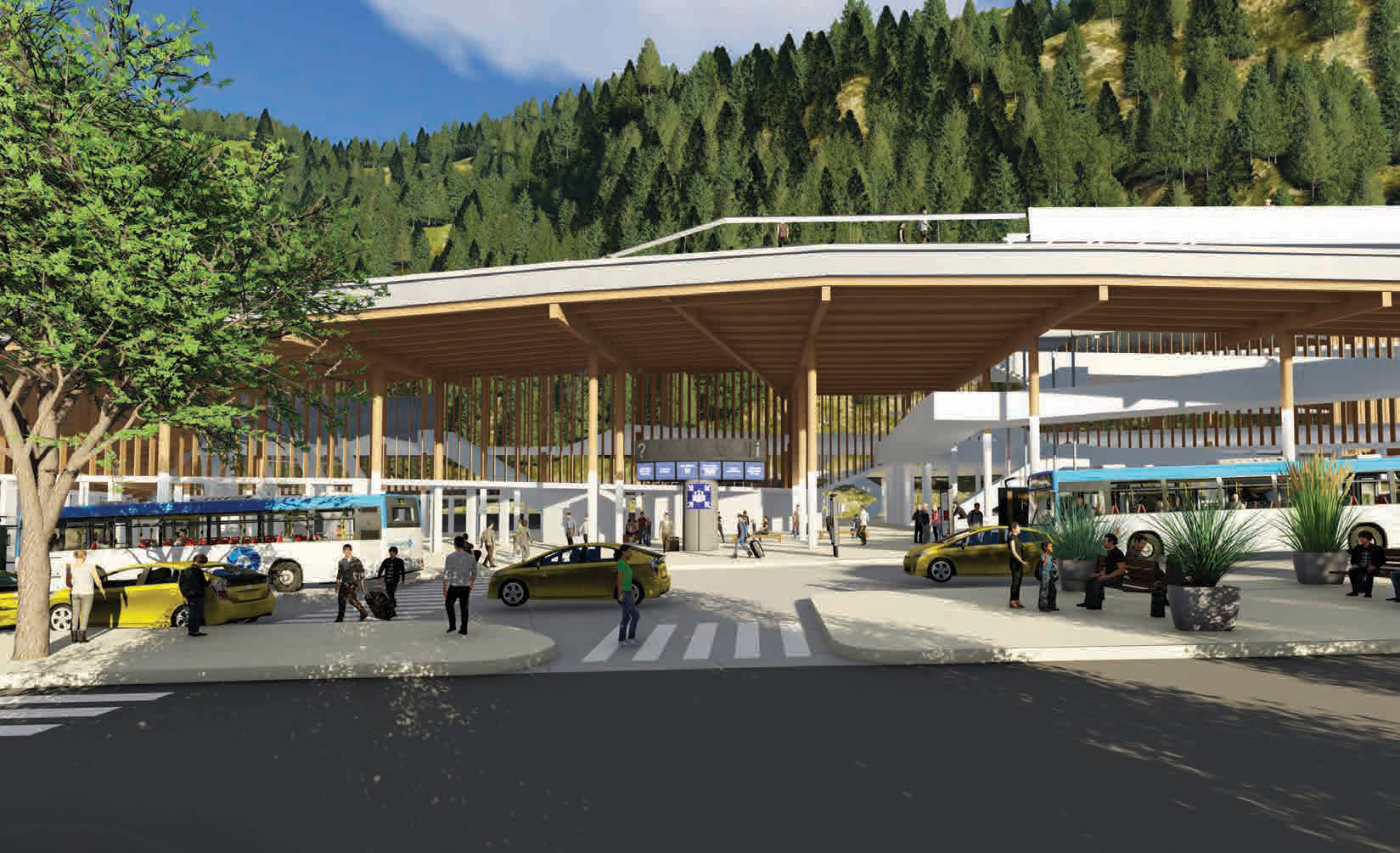 The new design incorporates a hybrid mass timber structure with the durability and flexibility necessary to accommodate high passenger volumes. Wayfinding is intuitive with clear pathways for pedestrian and traffic flow. Sunny decks and outdoor space connect directly with the waterfront.