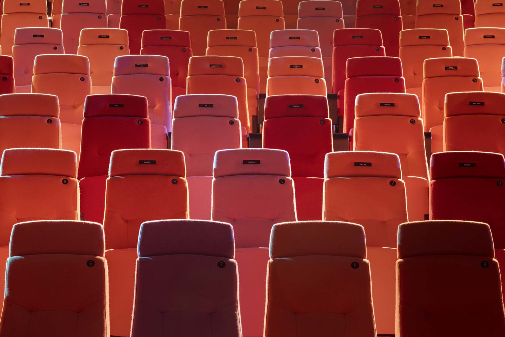 We ensured our custom designed seats featured some of the longest backs ever created in theatre seating. They were tall enough to eliminate the need for guard rails. We opted for bright colours in our upholstery, so these seats are unlike any other theatre in the city. This was possible because the new projection system technology reflected a more brilliant saturated image, which meant we could utilize lighter, more intense interior colours.