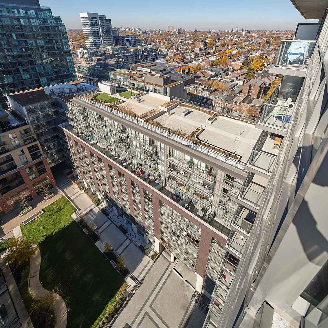 Situated in “one of the coolest neighbourhoods in the world” (NY Times) and in a flourishing art community, the project was envisioned as a contemporary addition that provides support to aspiring artists with live/work accommodation. With the existing Drake Hotel and Gladstone Hotel located in proximity, the project creates a strong pedestrian experience for its high-density neighbourhood, while also offering outdoor amenities.