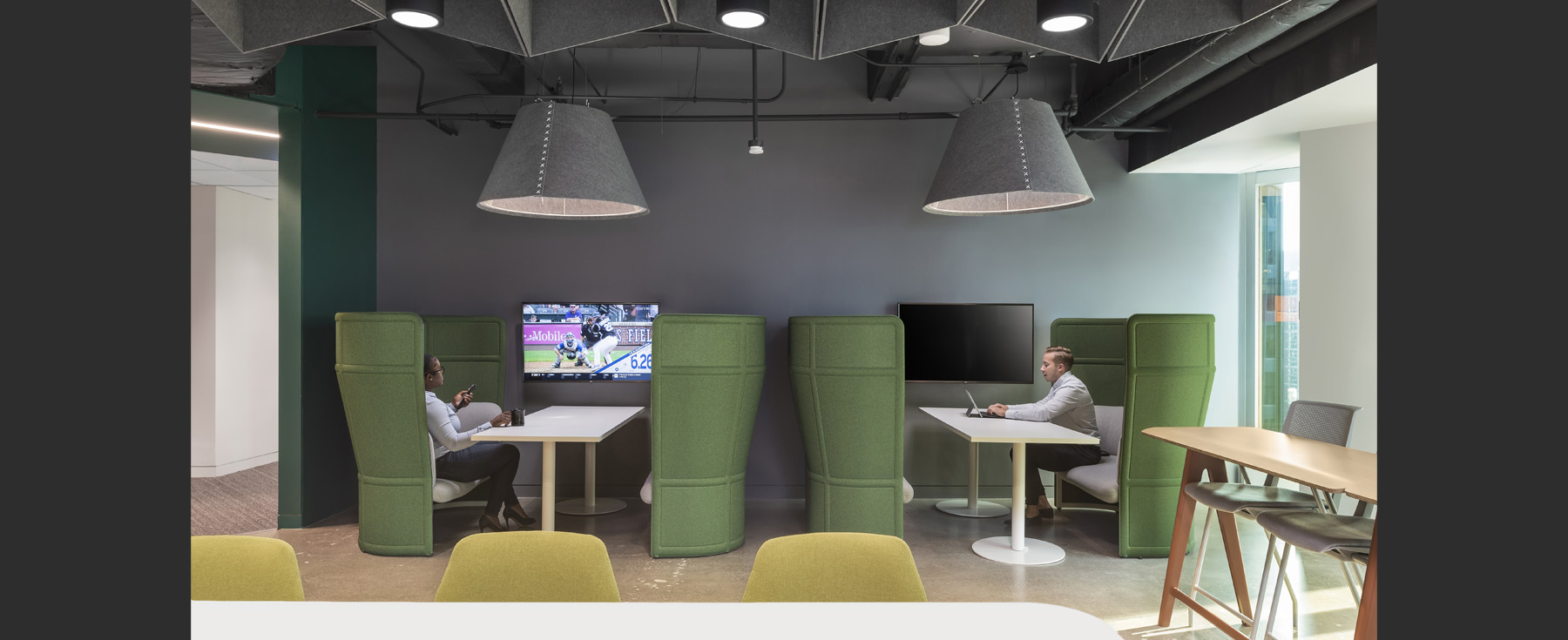 The preliminary workplace strategy called for zero offices and a floorplan that housed multiple meeting rooms, collaboration spaces, touchdown stations, and areas for hot-desking, while incorporating assigned seating for those who prefer a more permanent workstation.