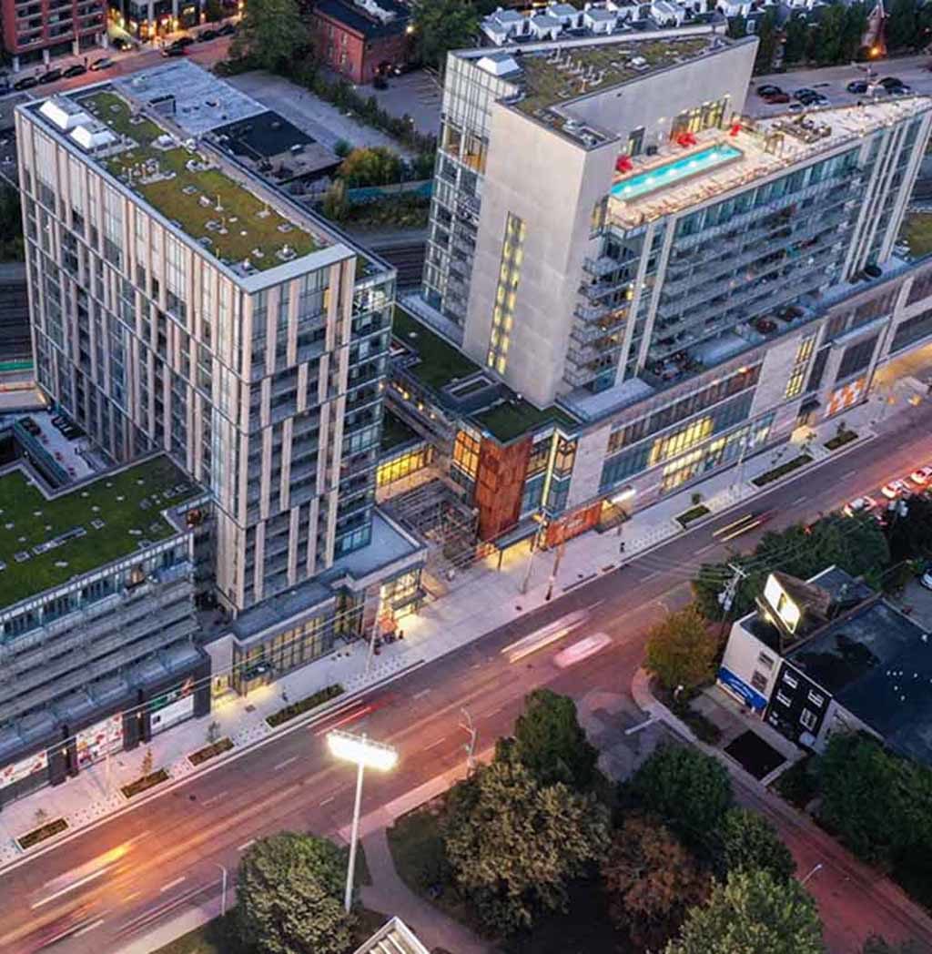 The project has created a destination for the people of Liberty Village and provides much needed residential, retail and amenity space for the neighbourhood. The successful integration of residential rental units with big box retail tenants has created multiple benefits. For the client, this has generated higher rental income afforded by the presence of larger-format retailers. Meanwhile, residents shop closer to home and enjoy the connected outdoor amenities created by the setbacks of the retail buildings.