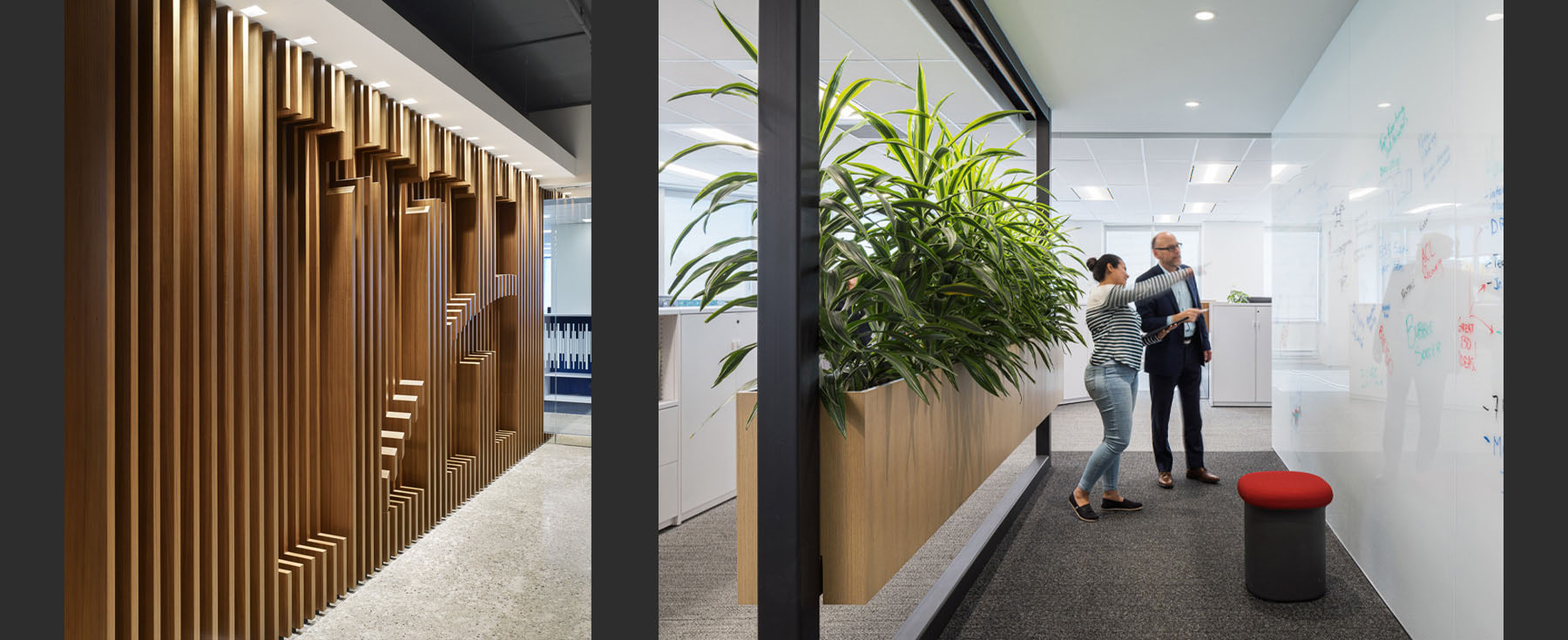 Moving away from the traditional model of large, private work areas, the design shifted focus from ‘me’ spaces to ‘we’ spaces. Staff were drawn to the new office where they could connect with colleagues, share knowledge, and mentor others in a more open environment. This flexible model nurtured a culture of innovation and strengthened internal collaboration.
