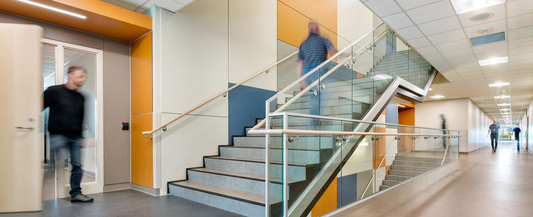 The building has been laid out and constructed to maximize flexibility, now and in the future. A simple central spine organizes the building and provides the main circulation. This layout is easy to adapt, allowing the reorganization of spaces off of the spine. Additionally, the building structure and systems have been designed to be expanded in the future without interrupting ongoing operations.