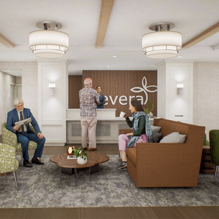 As part of a broader collaboration with Revera and SmartCentres across four projects, Revera Ontario prioritizes resident experience by creating multiple scales and sensory experiences that allow residents to have a variety of experiences within the building and grounds.