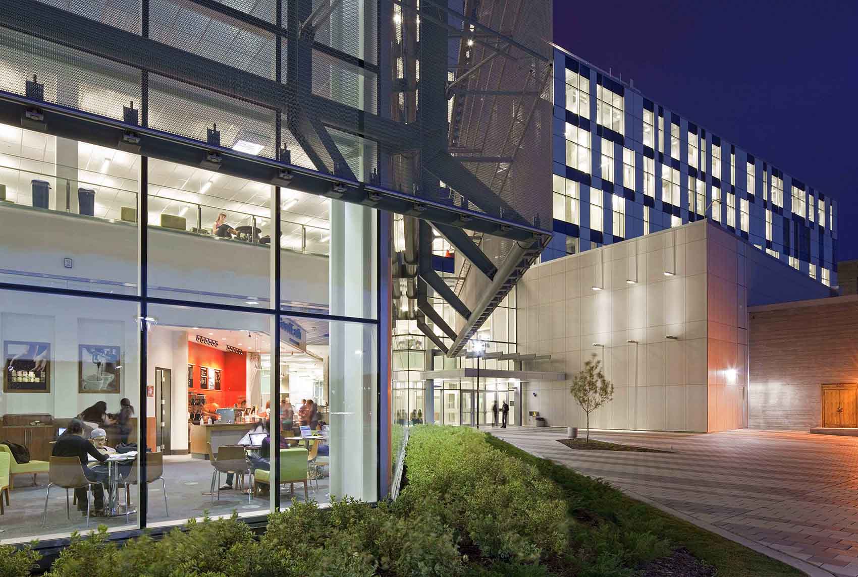 In collaboration with O2 Planning + Design, we designed a new campus courtyard for the project. Located outside of the library’s west entrance, the courtyard emphasizes the building’s connection to the existing fabric.
