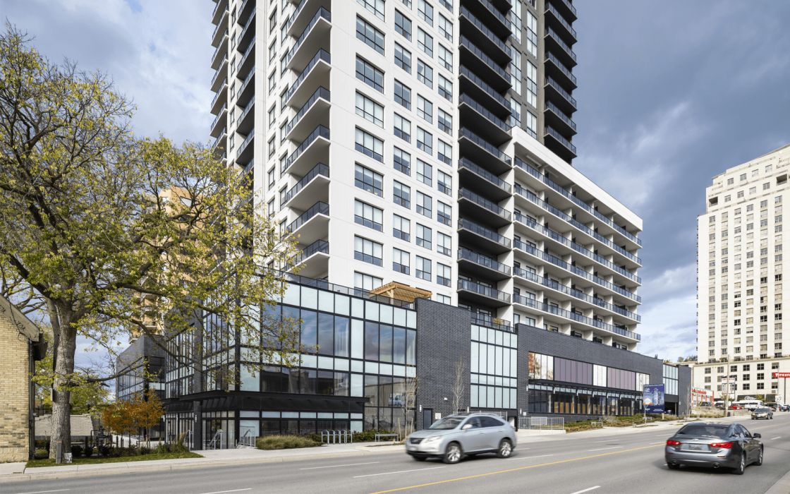 Our five-year partnership with Tricar has led to the net gain of over 1500 new homes for residents of Guelph and London. The Riverwalk project in London is an example of how a private residential building can serve as a catalyst of public engagement and urban expansion. The ‘Riverwalk’ name was chosen through a public competition and we aimed to continue the public interest and activation throughout. The base of the building boasts three commercial units, providing street level activation and a destination point for the community.