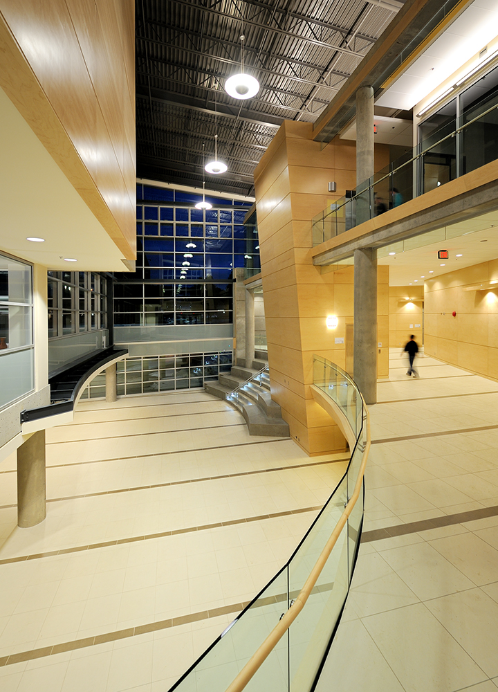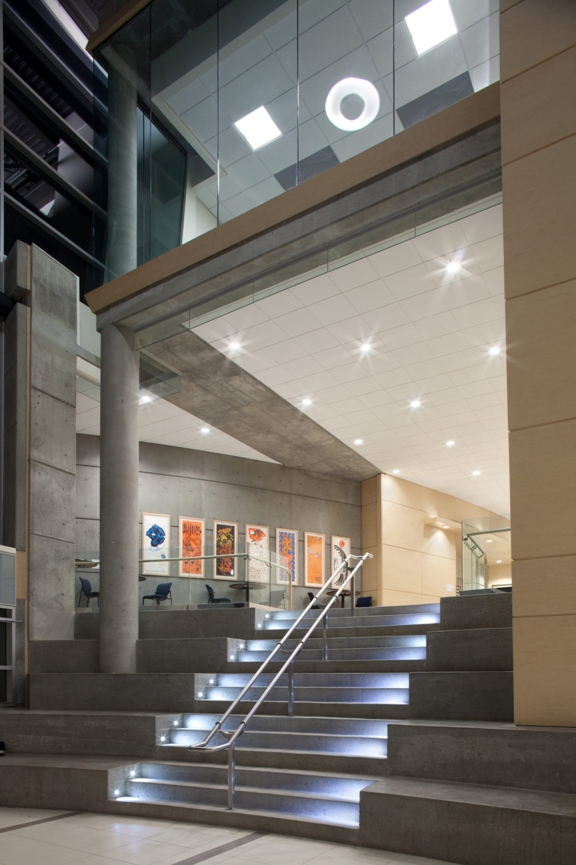 The Fipke Centre became a link between the East and West campuses. We aligned the atrium space with a pedestrian spine envisioned by the Campus Master Plan – the idea being to create a social hub that connected faculty and students.