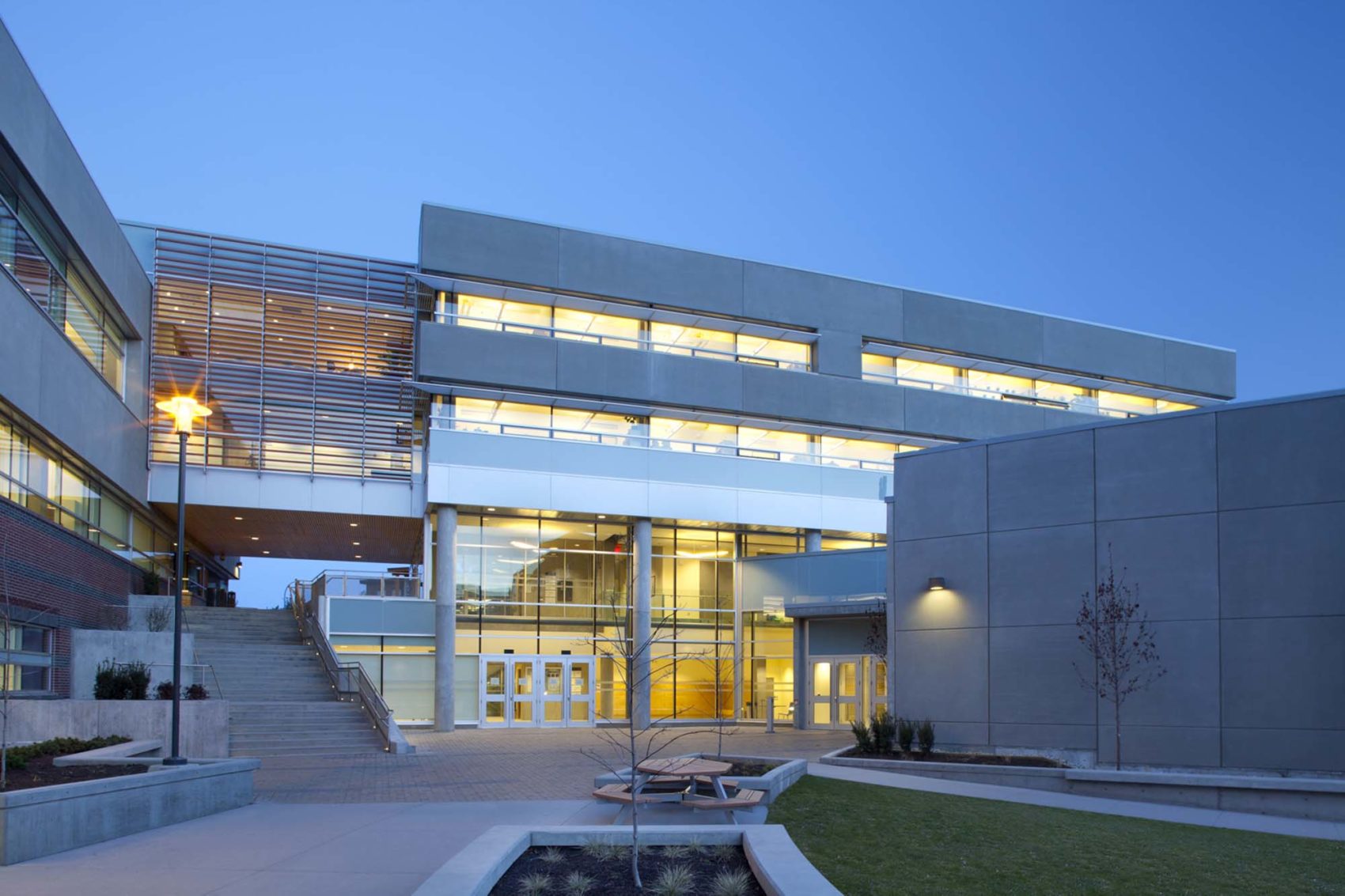 The Arts and Science building was added to complete the creation of the science precinct. An open breezeway through the middle of the building served as a link from the academic core of the campus to the residential precinct to the south. As time and constructability were vital, we worked with the Construction Manager to incorporate pre-cast concrete exterior panels manufactured in Kelowna to accelerate construction.