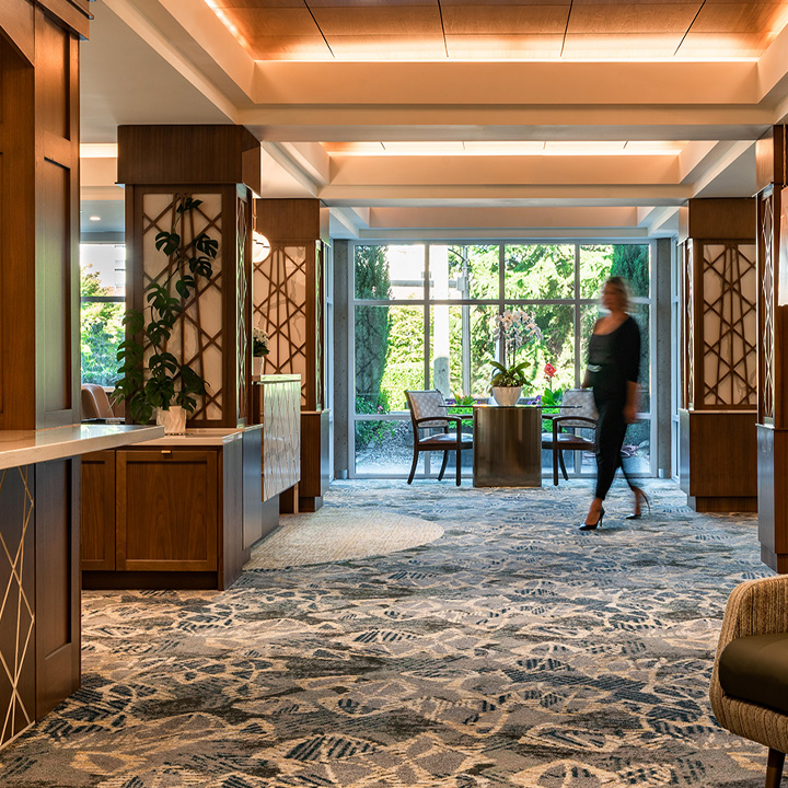 This senior living community challenges ageism through design. Amenities include multiple dining options, games, crafts, and a salon located at street level with view to the exterior and pedestrian realm. Residents can enjoy a range of experiences within the building designed for aging-in-place, with clear entry sequences and intuitive wayfinding.